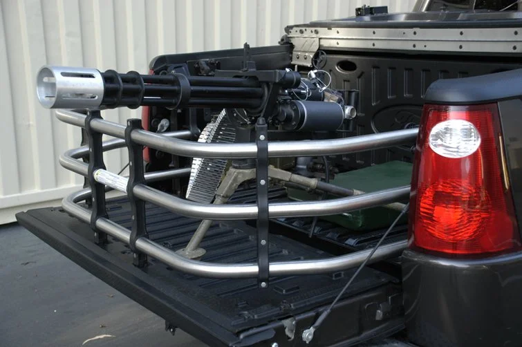 Anti Tailgater Modification. A standard Ford Sport Trac with an M134 "Minigun" prop added.